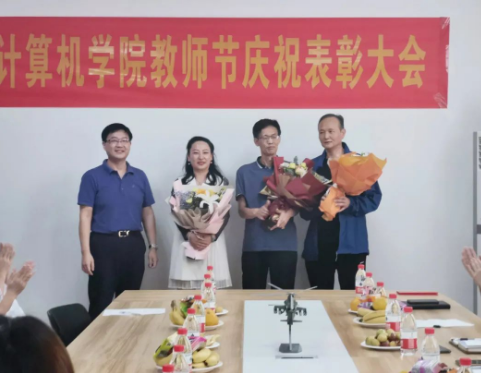 庆祝表彰活动在雄壮的国歌声中开始,学院学生代表满怀深情地向全体老师献上一首题为《想起你,像触摸每一米阳光》的诗朗诵,表达了莘莘学子对老师的深深敬意。院长杨俊清代表学院向教师致以节日问候,向辛勤工作的一线教职员工表示衷心感谢。他在致辞中指出,教师要不忘初心,做立德修身的榜样,做学生成人成才路上的领路人,在教书育人的工作中不断创造新业绩,携手共同绘就学院建设发展的美好蓝图。