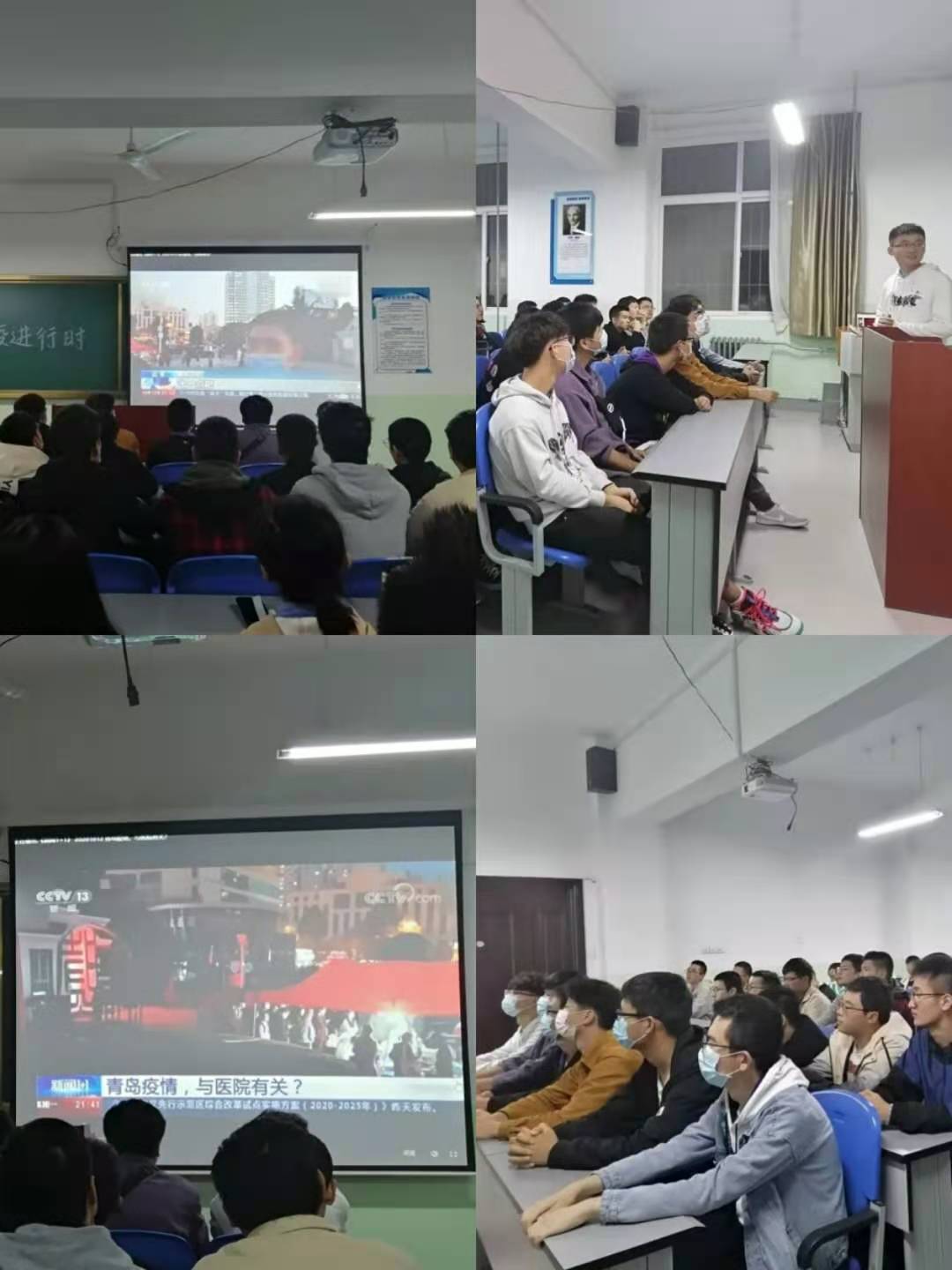 活动开始前,侯勇老师针对当时青岛疫情要求同学们通过本次活动,了解.线下防疫与节时防疫的区别,继续提高警惕,做好日常防护。活动开始后,赵雨晰同学结合官方新闻媒体《新闻1+1》,用事实提醒同学们加强防疫工作。赵雨晰同学通过“防疫知识知多少”、“我在防疫的日子”等章节,带领同学们更加深层次的了解防疫知识和保护自己的相关举措。并且通过活动分享,同学们通过分享自己的学习心得,增加了自己的防疫知识。活动后,侯老师对同学们提出了以下要求:1.注意个人卫生,熟练运用七步洗手法,外出注意个人防护;2.端正态度,对于疫情防护不可存在侥幸心理;3.每天按时打卡,及时上报个人身体情况,共同营造良好教学环境。并且希望同学们在特殊时期保护好自己积极配合学校卫生工作,营造舒适安全的校园环境。