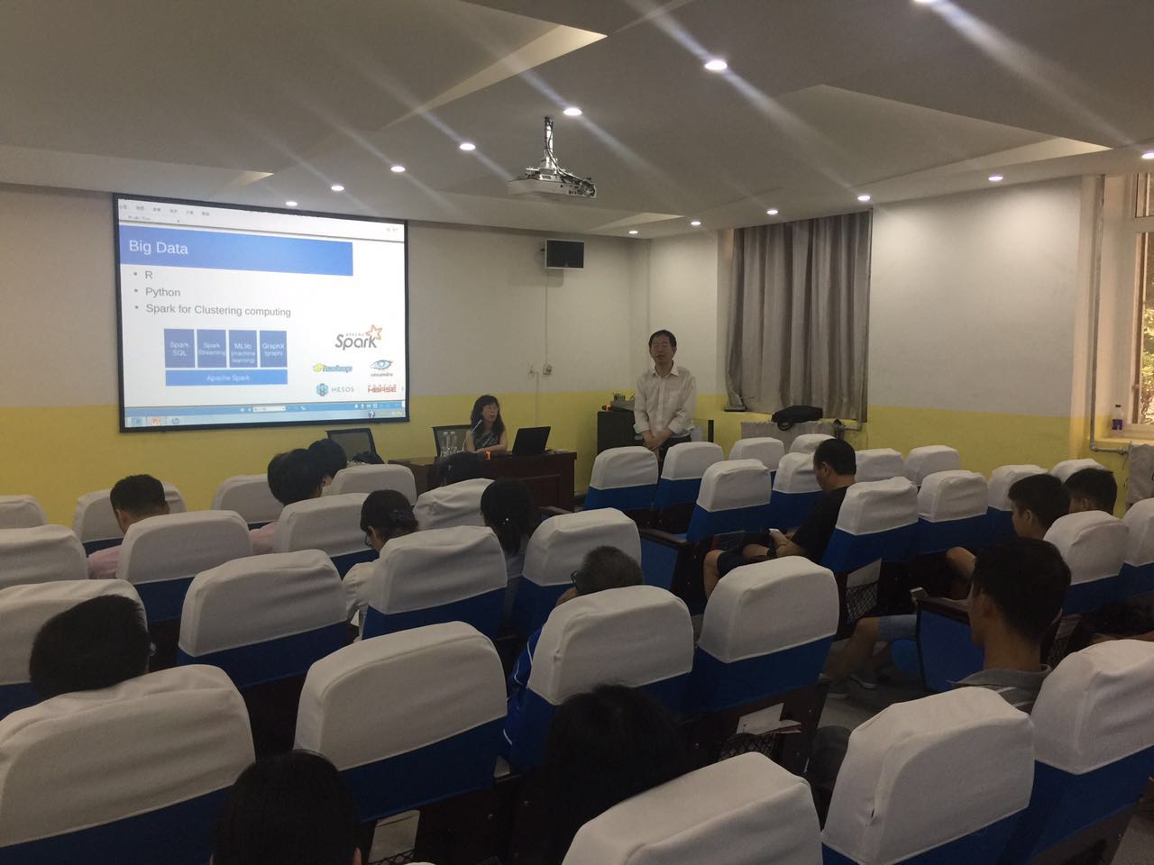 王云莉博士结合课题组最近几年的研究应用实例为大家讲述了自然语言处理、机器学习及其最新发展方向等内容。王博士严谨的论证和对学术认真的态度给在座听众留下了深刻的印象,特别是王博士自身的科研实践和经历体会使在座师生受益匪浅。