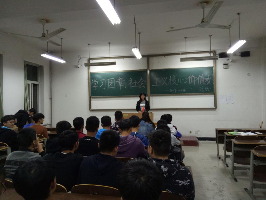10月24日晚,MILE米乐集团团总支组织大一新生开展学团章和社会主义核心价值观主题团会,旨在通过游戏的方式加强同学们对团章和社会主义核心价值观的认识。