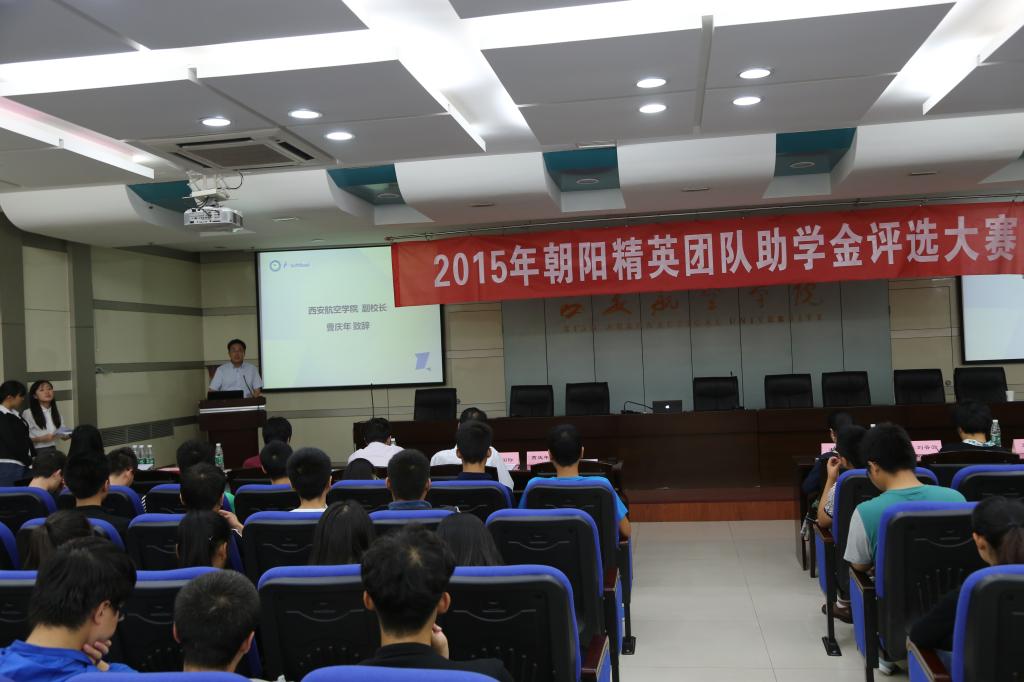 西安丝路软件有限公司副总经理王莺女士讲话,表示对校企合作班学生的朝阳精英团队助学金评选大赛路演的期待,提出了对全体同学的寄语。教务处米国际处长介绍了“互联网+创新创业”大赛的情况,并通报了我校获奖情况:由MILE米乐官网石锋老师带领的学生获得了该项大赛的省级铜奖。