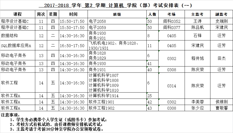 2017-2018-2学期考试安排(一)