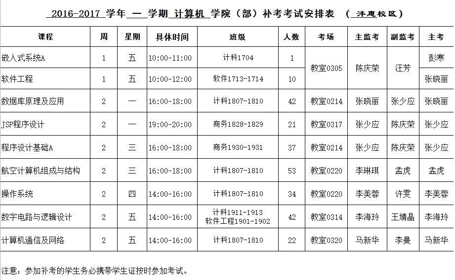 2016-2017-1学期MILE米乐集团补考安排表.xls