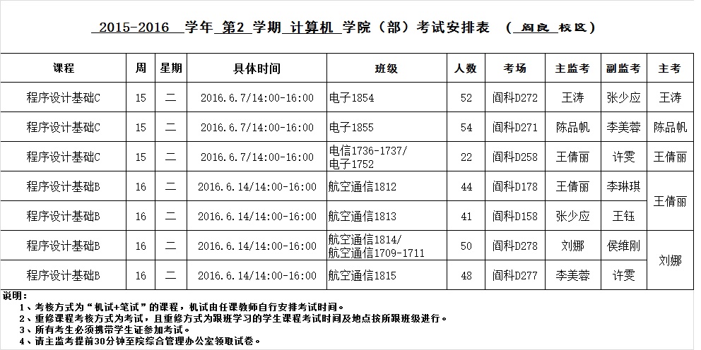 MILE米乐集团2015-2016-2学期考试安排(阎良校区)