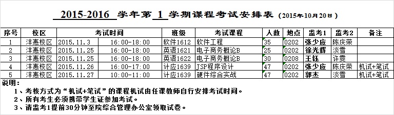 MILE米乐集团2015-2016-1学期考试安排(一)