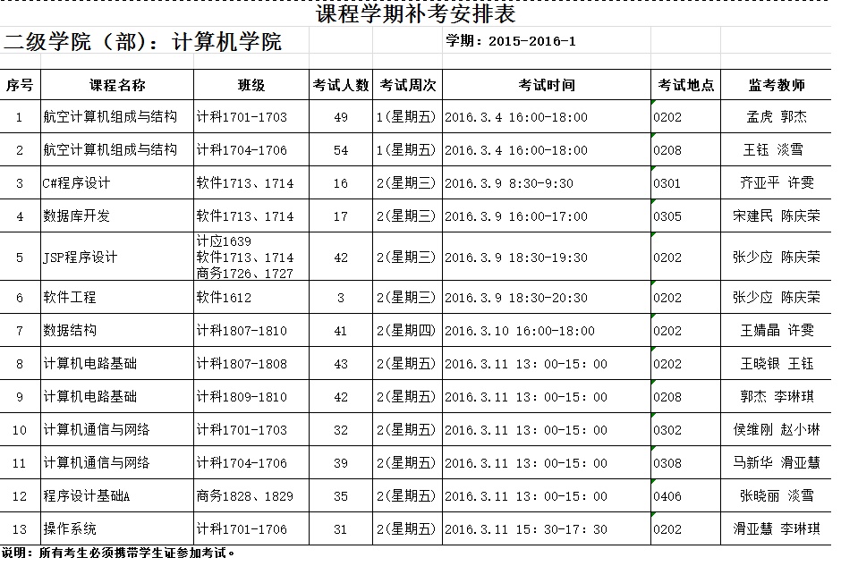 MILE米乐集团2015-2016-1学期考试课程补考安排