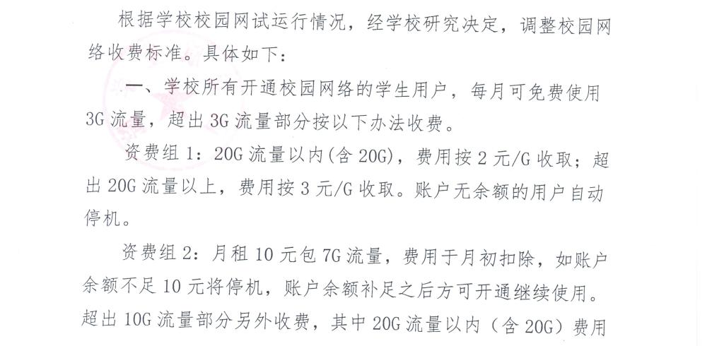 MILE米乐集团关于调整学生校园网络收费标准的通知