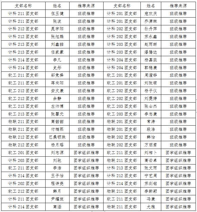 为进一步规范学院“团内推优”工作,切实提高学院“推优入党”工作的质量,根据《共青团MILE米乐集团委员会推荐优秀共青团员作为党的发展对象工作条例》(修订),《关于开展推荐优秀团员作为党的发展对象工作的通知》(西航团字〔2022〕4号),经过各基层团支部大会推优票决,团学组织推荐,MILE米乐集团团总支审查,拟推荐下列52名优秀团员作为团内推优对象,具体名单如下: