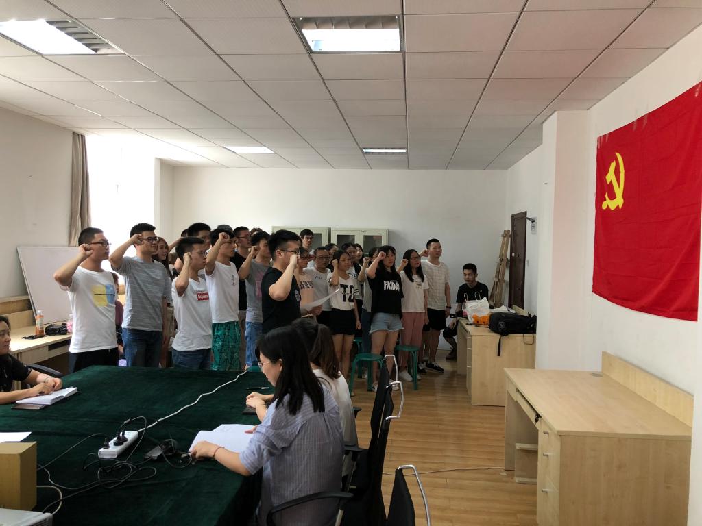 大会开始,全体齐唱《国际歌》,在学生党员康梦宇的带领下,新党员面向党旗进行了庄严的宣誓,表达了自己为共产主义理想奋斗终身的决心。组织委员米嘉琪表示,希望大家以后能用更高的标准严格要求自己,主动承担组织的工作,真正地发挥党员先锋模范作用。