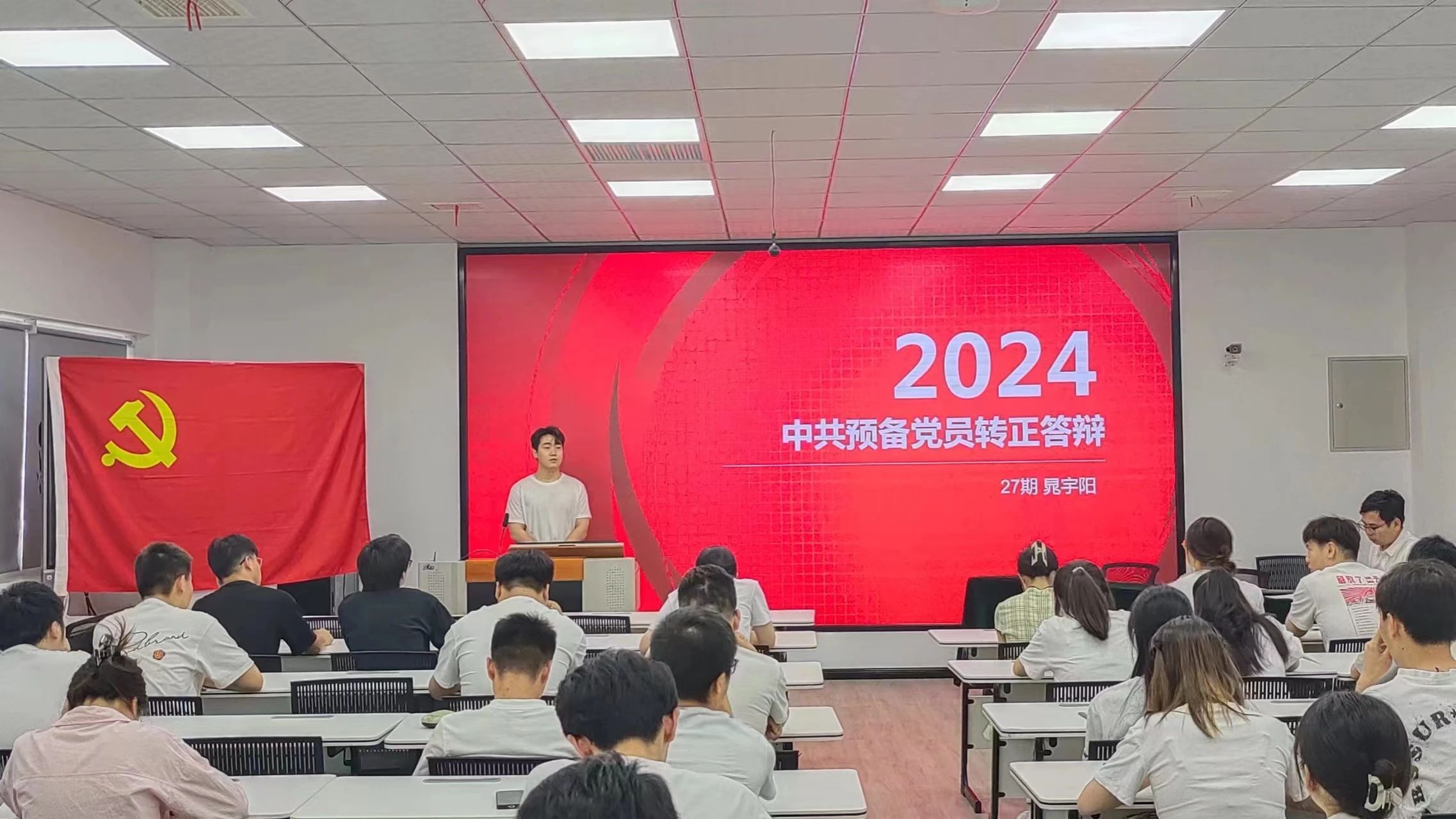 2024年5月22日,MILE米乐集团学生第一党支部在教学主楼0920召开预备党员转正大会。会议由学生第一党支部书记贺宇主持,MILE米乐集团学生第一党支部全体在校党员参加本次会议。
